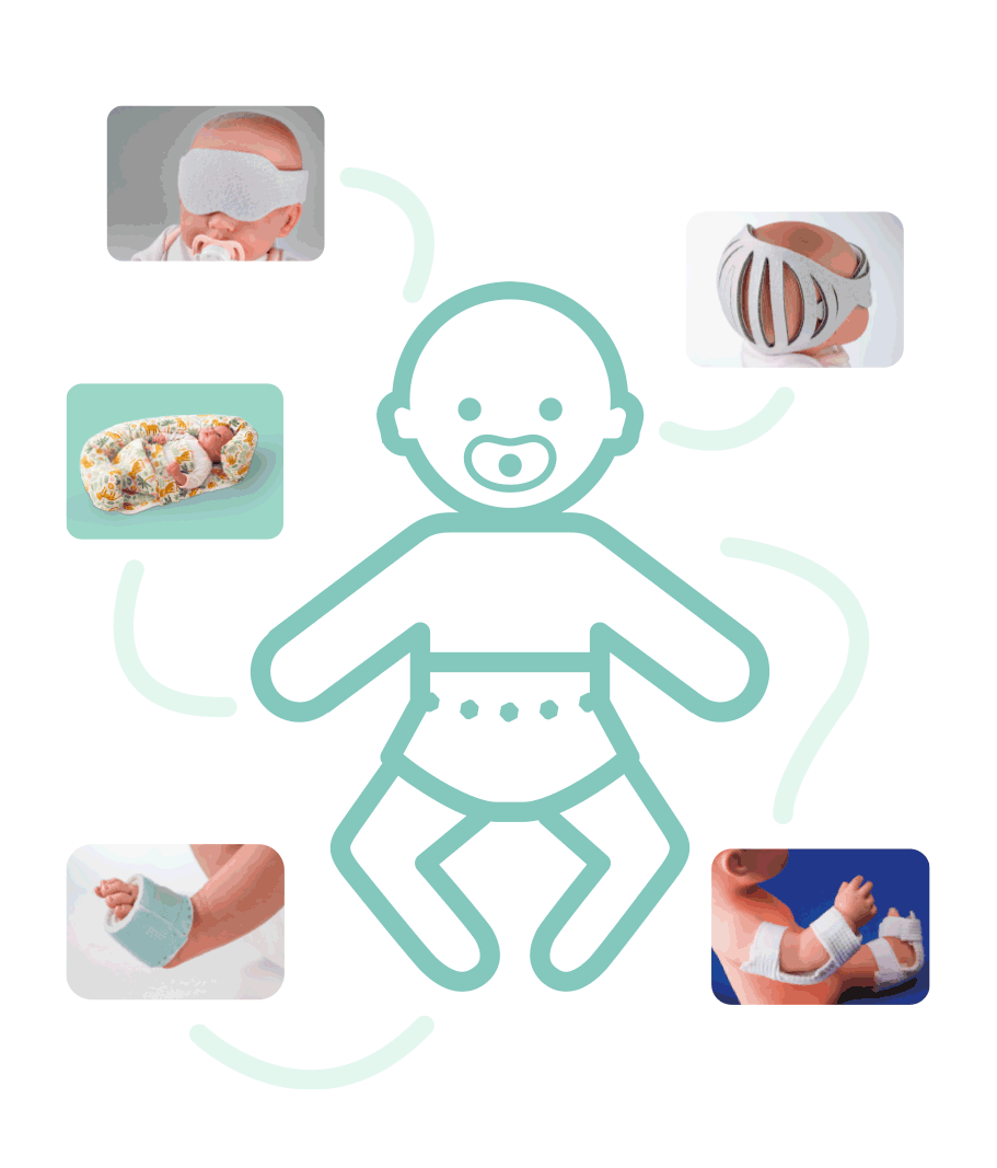 Progettati per neonati prematuri e/o malati, capaci di ricreare la posizione fetale, garantendo un ambiente confortevole, accogliente e morbido durante le cure mediche.